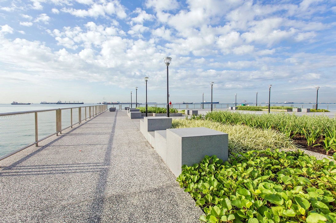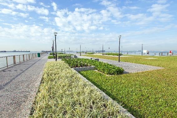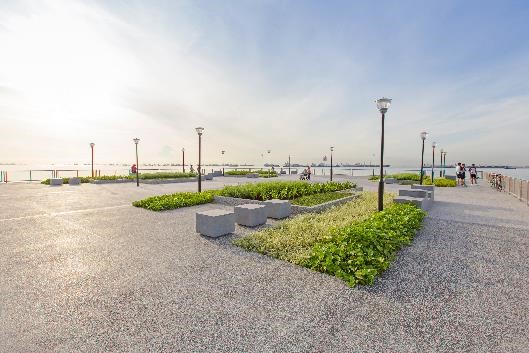 As part of drainage improvement works, a section of the outfall structure has been designed as a landscaped deck with simple park furniture to serve as communal spaces for visitors to relax and enjoy the views. Planter boxes on the deck are provided to accommodate planting of shrubs to bring greenery to the area. The existing lawn area which is popular with kite flyers has been retained and integrated with the new landscape deck and the rest of the park.