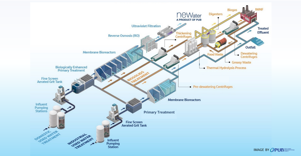 Domestic used water will be treated at a 650,000m3/day module and then further purified to NEWater, while industrial used water will be treated at a 150,000m3/day module to international water quality standards before discharging to the sea.