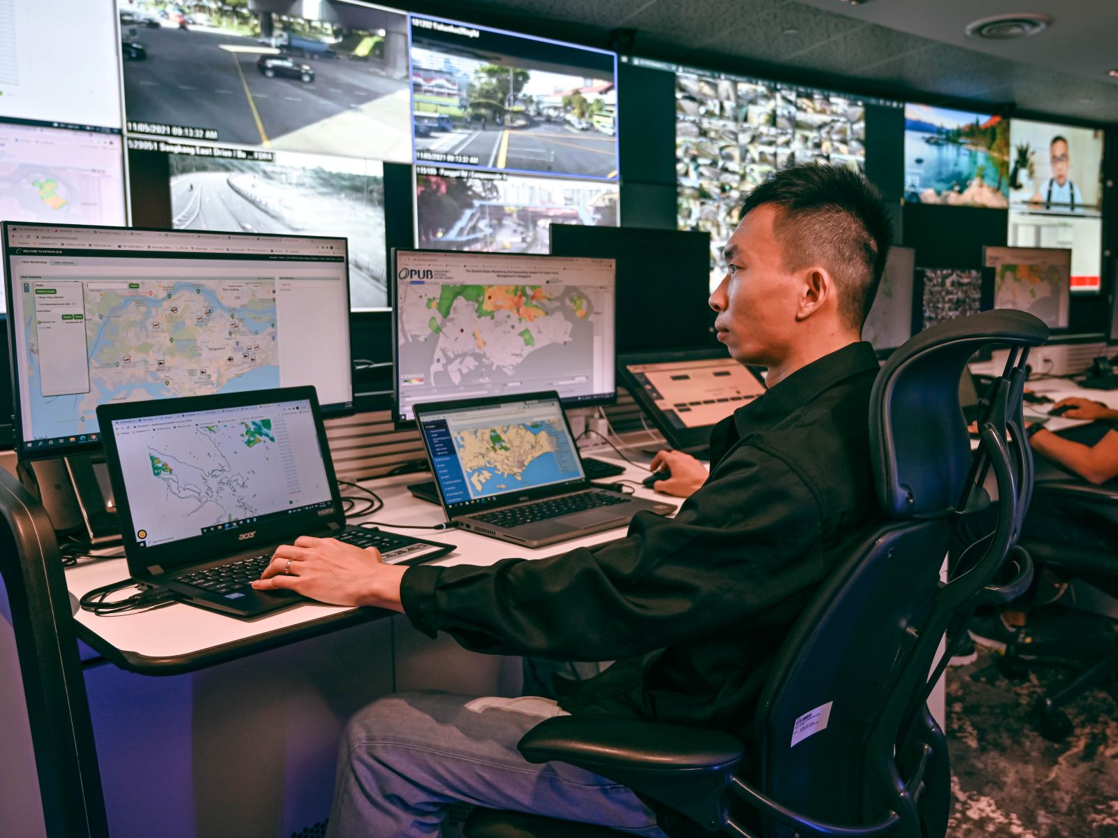 Staffed round the clock, PUB officers at the JOC vigilantly monitor data from various locations across the island, swiftly alerting relevant teams in the event of a flash flood.
