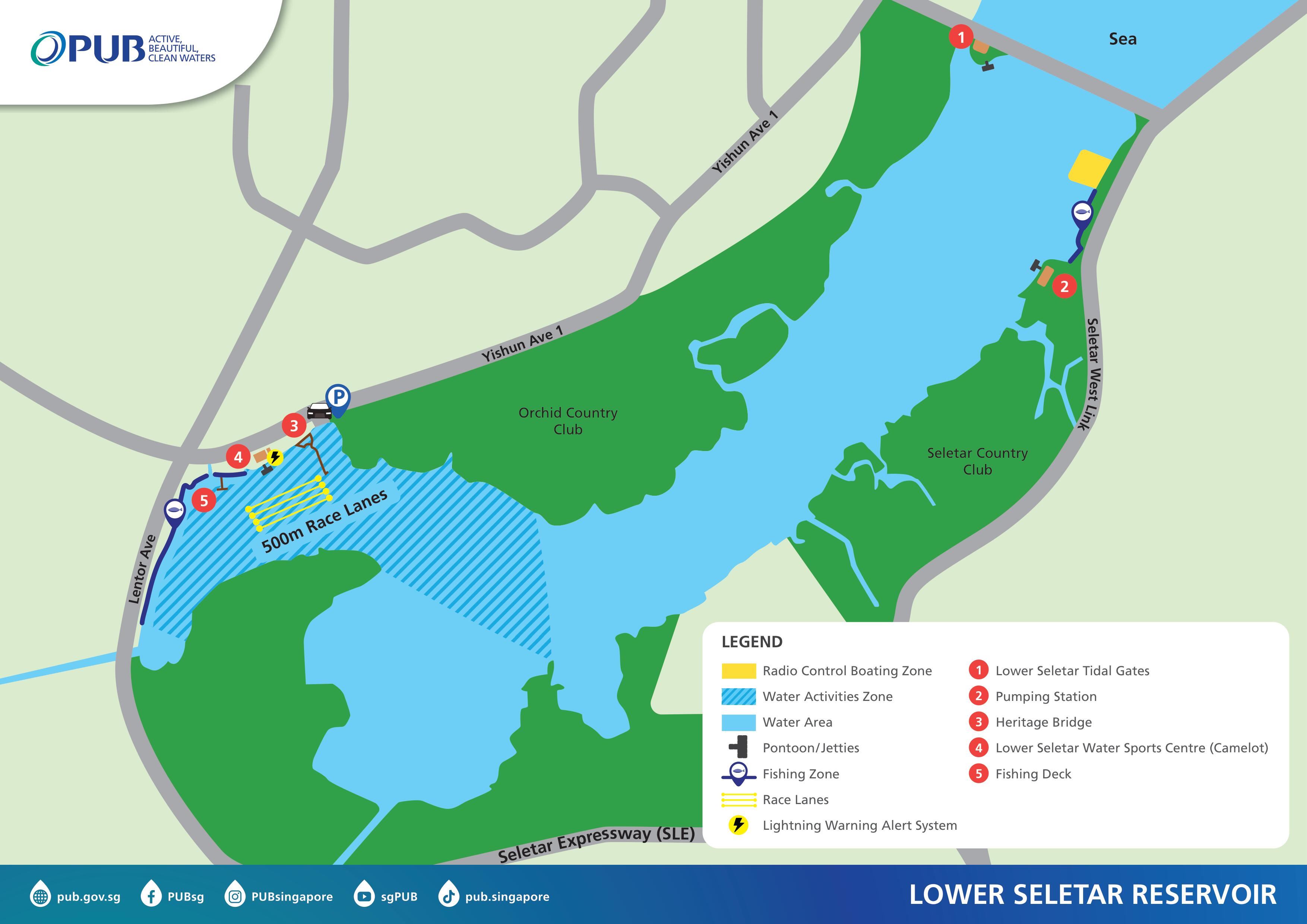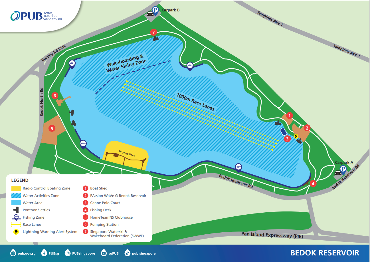 Radio control sailing and electric boating is permitted only within designated areas at: Bedok Reservoir, Lower Seletar Reservoir and Pandan Reservoir.