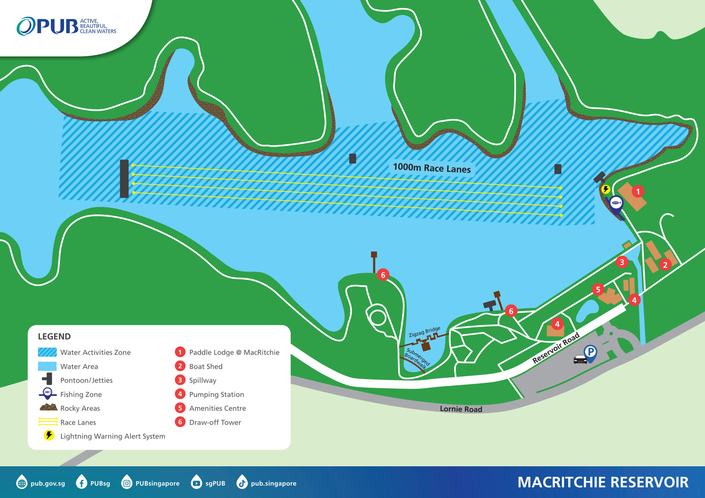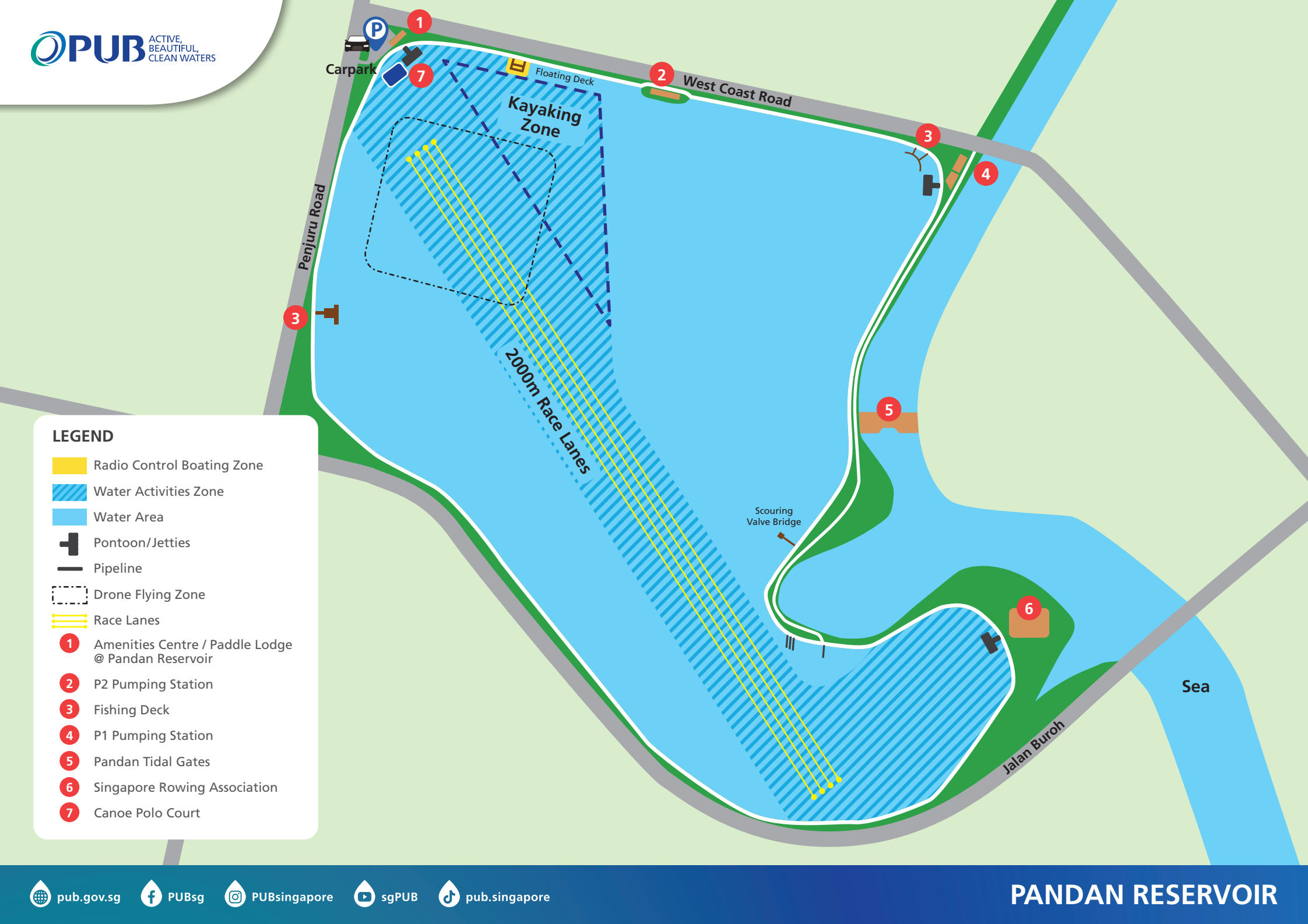 Since 2004, PUB has progressively opened up its reservoirs for water sports and activities such as kayaking, dragon boating, fishing and radio control sailing and electric boating under the Active, Beautiful, Clean Waters (ABC Waters) Programme. By bringing the community closer to water, they can better cherish and appreciate this precious resource.