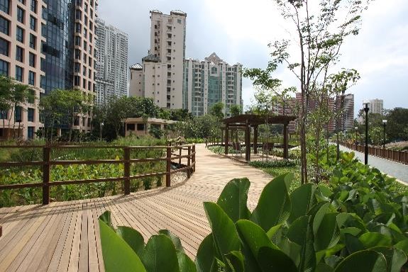 The 1.2 km stretch of Alexandra Canal from Tanglin Road to Delta Road has been transformed into an attractive open waterway with softened banks that is seamlessly integrated with adjacent developments. A short stretch of the open waterway was decked over to create an interesting water cascade, while wetlands help to cleanse the water and provide an excellent opportunity for outdoor learning.