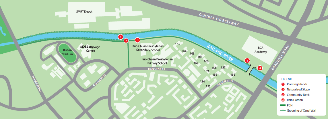 ABC Waters @ Kallang River between Bishan Road and Braddell Road has incorporated a variety of design elements in four stretches along the river.