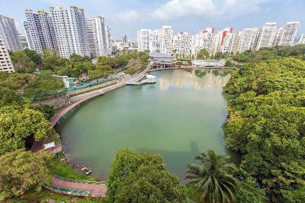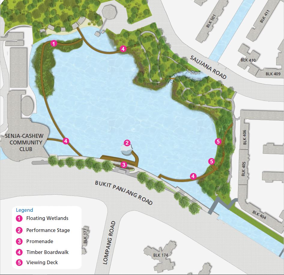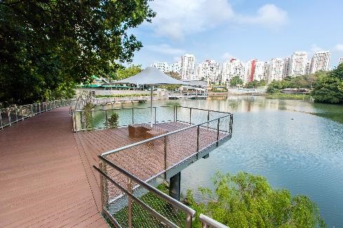 The enhancements included a boardwalk for residents to jog or walk, viewing decks that lends a panoramic view of the water body and a stage for performances and community events by the water. ABC Waters design features such as floating wetlands that improve water quality and enhance the biodiversity of the pond have been included.