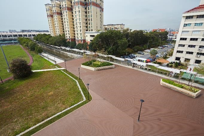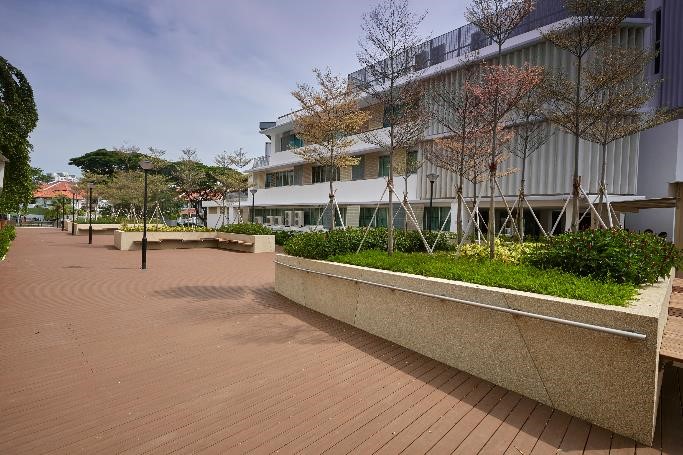 A 150-metre section of Siglap Canal next to the Kampong Kembangan Community Club (CC) has been decked over to improve connectivity in the area. This Activity Plaza located next to the CC provides the community with a recreational space for activities. Additional seating enhanced with greenery have also been incorporated on the deck to facilitate communal bonding and interaction. A rain garden created next to the CC not only enriches the aesthetics and biodiversity of surrounding landscape but also treats rainwater runoff before the cleansed water is channelled into the Siglap Canal.