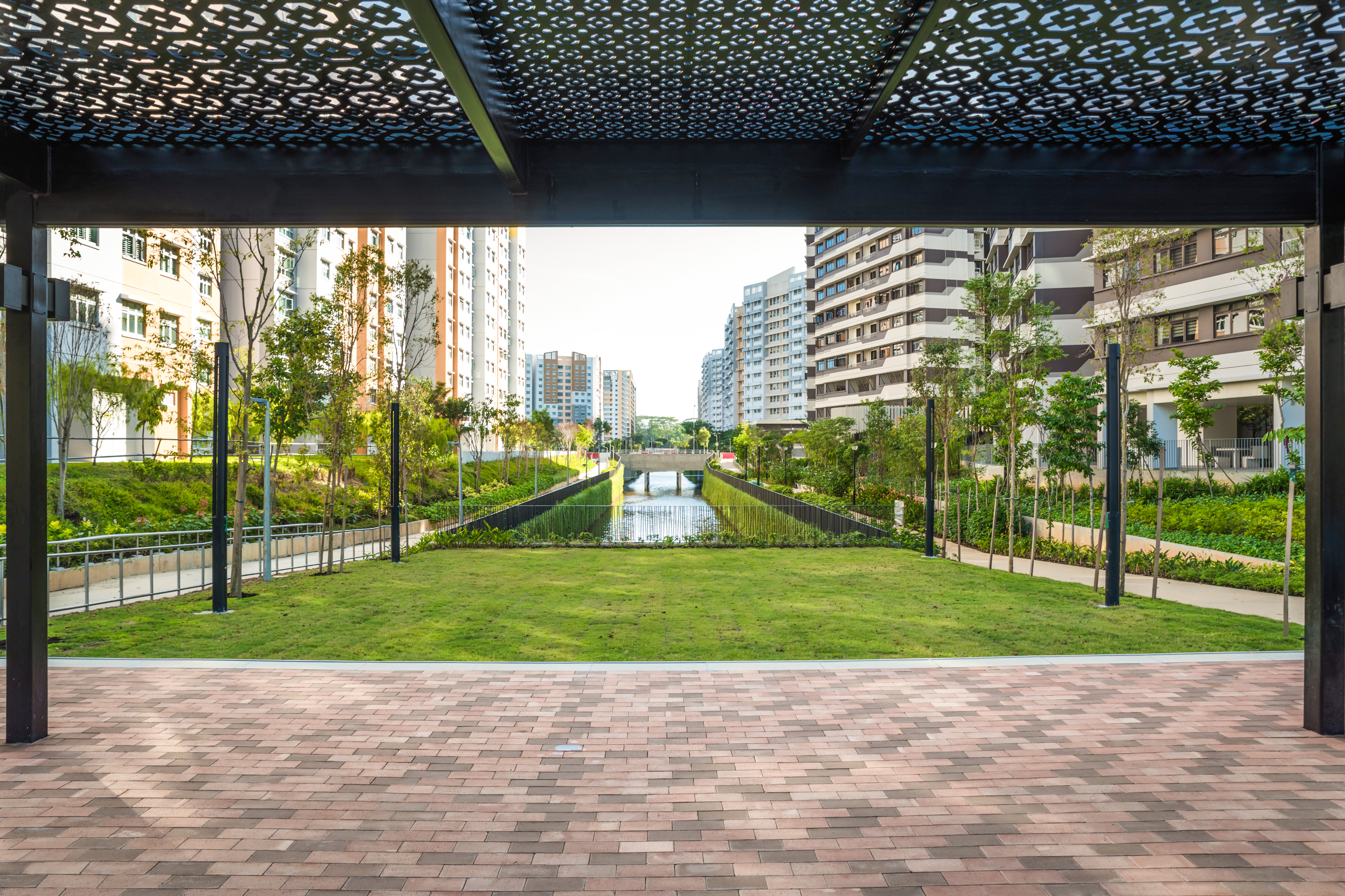 Under the ABC Waters Programme, pathways have been introduced along both sides of Sungei Simpang Kanan to improve connectivity between the housing developments and the Simpang Kiri park connector. A plaza at Canberra Link provides a communal space for residents to carry out activities next to the waterway.