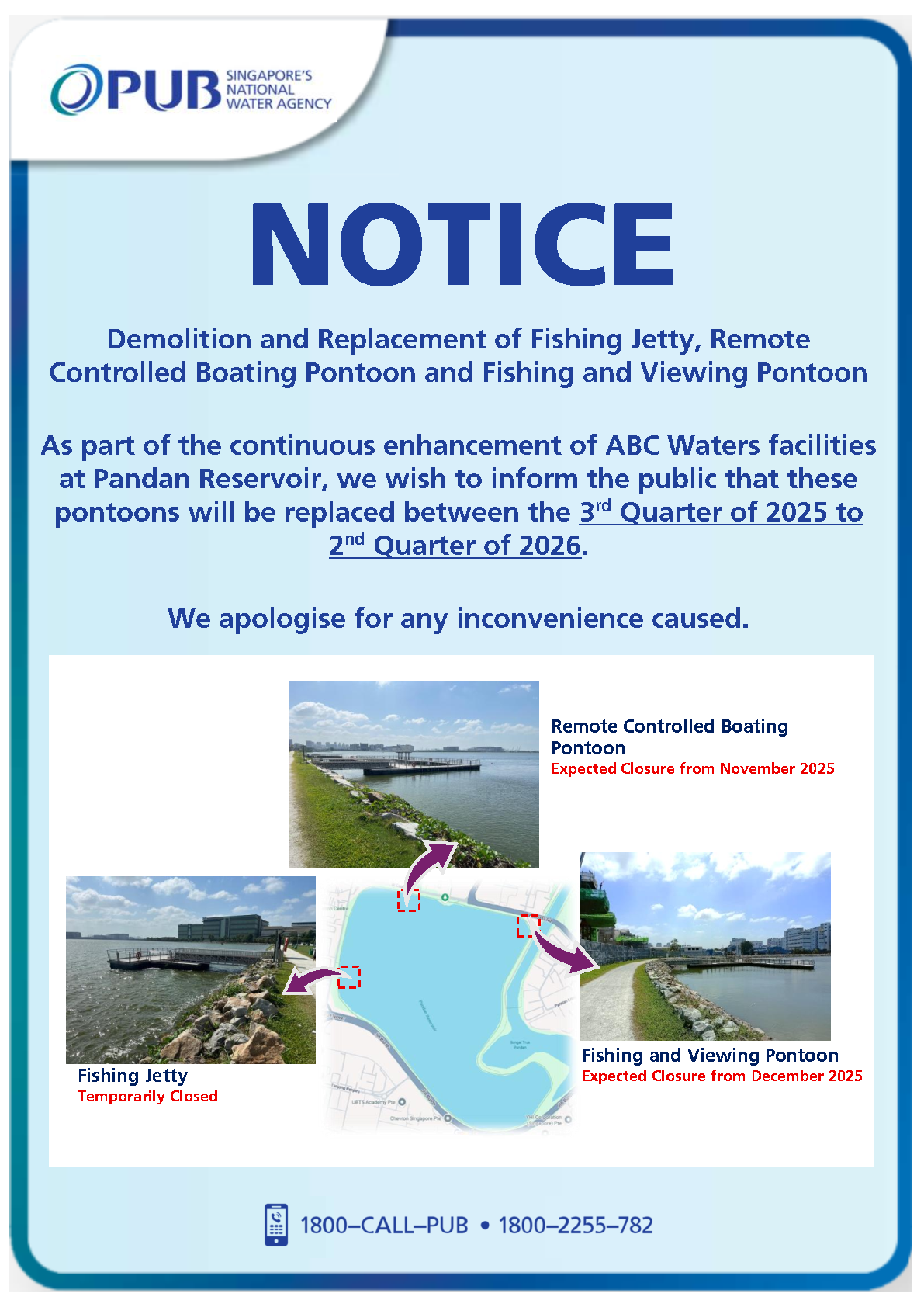 • Upper Seletar Dam: 30 October 2025 to 30 November 2025Road works will be carried out at these locations during the above periods. The affected areas will be cordoned off for public safety.