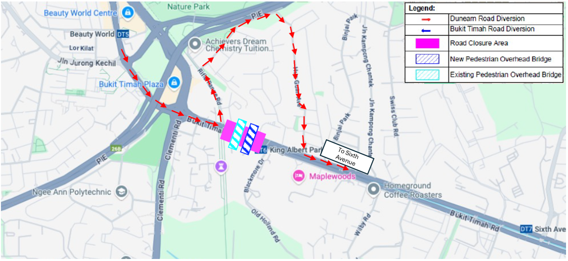 A section of Bukit Timah Road (The Sterling condominium to 1 King Albert Park) and Dunearn Road (Rifle Range Road to The Blossomvale condominium) will be closed to traffic on 16 and 17 January 2026 from 12.30am to 5.00am.