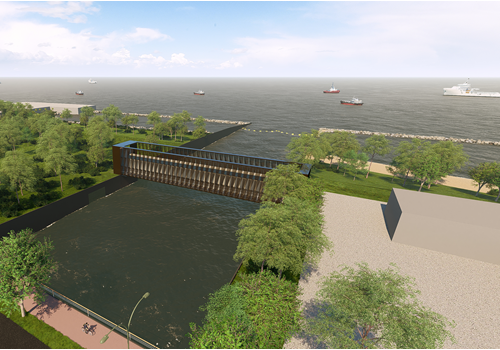 Artist’s impression: Tidal gate concept, integrated with waterfront and park spaces